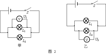 3.分别按图2甲、乙电路连接导线,每次检查无误后再闭合开关计下电压表的示数U1、U2.每次读数后都应及时断开开关,把所测得的数据填入设计的表格中.