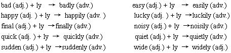 注意:以y结尾的形容词加ly时,要将y变成i, 然后加ly.