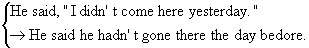 注意人称代词,动词时态,动词,时间及地点状语的变化:
