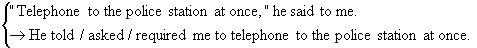 3)如果直接引语为祈使句,在变换为间接引语时除了作出上表所要求的变化以外有时还需变换动词。