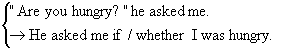 2)如果说直接引语为疑问句,变为间接引语时,除了作出上表所要求的变化外还要将疑问语序改为陈述语序,就像一般宾语从句的语序一样。如果是一般疑问句需加if 或whether表示“是否”。如: