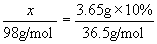 [投影]例3 多少克硫酸所含的分子数与3.65g 10%盐酸所含的分子数相等。
