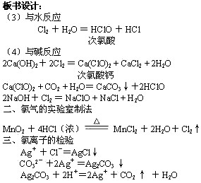 讲解:氯气的毒性。强调闻气体气味时应该注意方法,只要方法正确,是没有危险的。教师演示,可以让学生尝试。