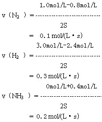 mol/L,氨气的浓度为0.4 mol/L 。分别用氮气、氢气和氨气的浓度变化表示的这2秒内的化学反应速率是多少?有什么关系?