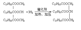 应用:工业上将多种植物油变成硬化油。硬化油的性质稳定,不易变质,便于运输、可用作肥皂、脂肪酸、甘油、人造油等原料。