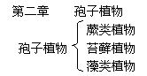 出示几种具有代表性的孢子植物(包括藻类、苔藓、蕨类植物),组织学生观察。