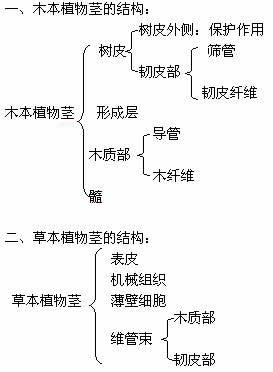 重点:木本植物茎、草本植物茎的主要结构、功能和区别。