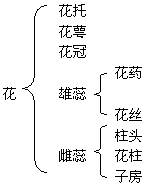 本节课主要是通过学生对花的解剖,分析、总结出花的各部分结构名称和功能。