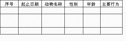 今天我们学习了动物行为的概念、研究动物行为的目的和方法。主要的方法是观察法和实验法。就你们身边常见的动物,举几个动物行为的实例,并将观察到的行为表现记入下表(课后观察1周)。