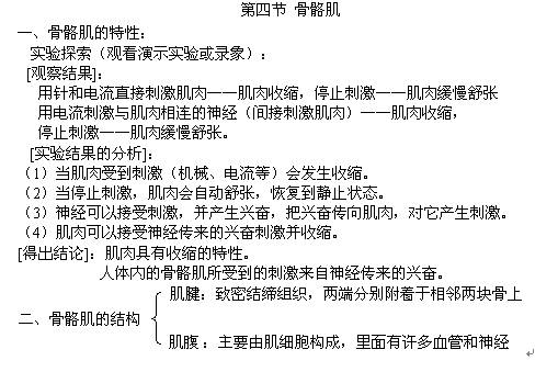 (4)肌肉可以接受神经传来的兴奋刺激并收缩。得出结论:肌肉具有收缩的特性。(板书)
