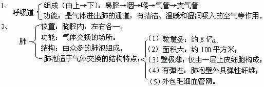 (1)呼吸道(由上→下):鼻腔→咽→喉→气管→支气管