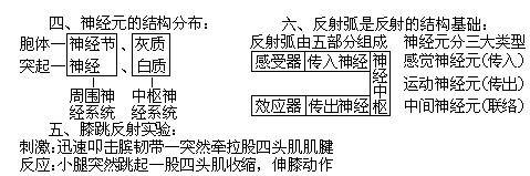 神经元的分布→膝跳反射实验→对实验现象的解释→反射弧与反射方式。