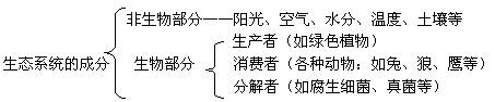 再出示森林生态系统图片(或其他生态系统图片),让学生分析由哪些成分组成。