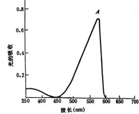 ②学生实验结束后,教师可给学生演示叶绿体的色素吸收光谱的现象。方法是:用红、橙黄、绿、蓝紫色的薄膜,分别遮住同一光源。把盛有叶绿体的色素提取液的试管,分别放在红、橙黄、绿、蓝紫色光前、让学生观察这些光透过色素提取液的情况。可明显地看到红和蓝紫色光透过的较少(暗),橙黄和绿色光透过的较多(亮)。引导学生分析这些现象,得出叶绿体中的色素,主要吸收红光和蓝紫光。在此基础上,出示教材中的光合色素吸收光谱曲线,引导学生分析曲线含义,总结光合色素吸收光波的不同特点。
