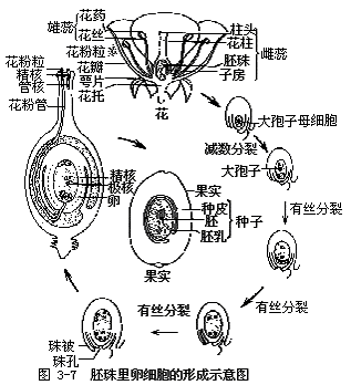 强调:①减数分裂发生的时间、部位;②植物开花、传粉、受精的生殖特点;③受精卵是发育起点,发育成胚,胚珠发育成种子;④种子在适宜条件下萌发,通过营养生长和生殖生长,长成成熟植株,开花结实,继续繁衍。