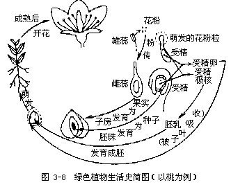 6.总结被子植物的生活史。提问并以图解(图3-8)的方式回顾被子植物“种子→种子”的过程。