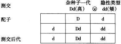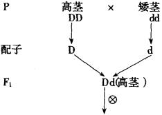。受精时,雌雄配子随机结合,便出现3种基因组合:DD:Dd:dd=1:2:1,性状表现为:高茎:矮茎接近3:1。