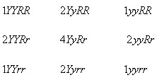 问:从棋盘的16种组合方式中,共有几种基因型?几种表现型?它们的比例如何?