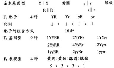 。这里等位基因的分离和非等位基因间的自由组合是彼此独立、互不干扰的(可用染色体模型在磁性黑板上演示基因的分离和重组,让学生尝试写出