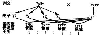 杂交后,子代的基因型和表现型以及它们各自的数量比。(在银幕上显示。)
