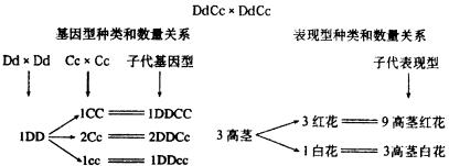 然后按基因的自由组合定律,找出双亲各产生配子的种类,再用棋盘法(或分技法)写出后代的组合情况,就可以找出答案。