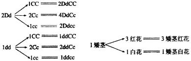 ,子代的表现型和它们的数量比则为3红花:l白花。在此基础上列表推算: