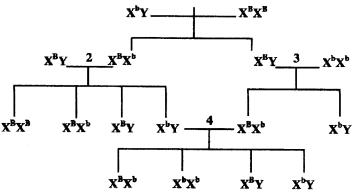图中可以看出,如果第1例中的女儿作了母亲,她的丈夫是色觉正常的男子,这就是第2例了。