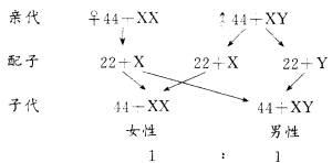 这里还必须注意到,受精时,两种精子和卵细胞的结合是随机的,后代的性别比理论上应为