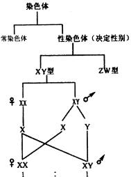 绝大多数生物的性别是由受精卵中的性染色体决定的。根据生物的雌雄个体间性染色体组成上的差异,性别决定分为