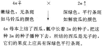 ④为了能从表现上判断是否无籽西瓜,可用显性基因来标志二倍体父本,跟隐性的四倍体母本杂交,例如: