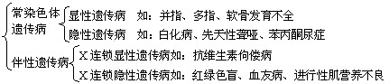 人类遗传病主要包括单基因遗传病、多基因遗传病和染色体异常遗传病3类,要知道这些病的遗传方式及常见病症。