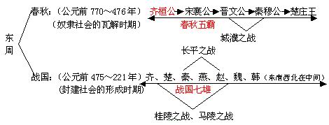 公元前770年,东周建立。东周分为春秋和战国两个阶段。公元前770年至公元前476年的春秋时期,是我国奴隶社会的瓦解时期:公元前475年至公元前221年的战国时期,是我国封建社会的形成时期。