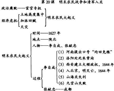 本节内容以明末农民起义为线索,着重介绍了明末农民起义的兴起原因,发展过程,起义口号,起义结果,最后的迅速灭亡及原因;还从另一个侧面介绍了明朝的灭亡原因,灭亡的过程;以及清军的入关,清朝的全国性政权的建立与发展。