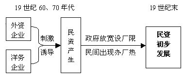 1.民族资本主义产生的过程:19世纪六七十年代,在外国资本主义和本国洋务运动的刺激和诱导下,一些官僚、地主和商人开始投资新式工业,这样中国的民族资本主义产生了。这里要简单解释何谓新式工业,并且指出中国民族资本主义产生的情况和西方资本主义的产生是不一样的。