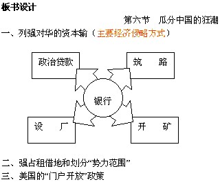 提问:在瓜分中国的列强中,缺少哪个主要资本主义国家?为什么会这样?教师要强调美西战争是帝国主义重新瓜分世界的第一次战争,并让学生阅读教材小字和引用的文字材料。由此让学生认识到,美国不会放弃这一侵略时机