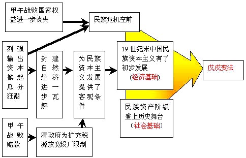 通过提问、回答、归纳讲述,使学生在明确戊戌变法的历史背景时,掌握章节之间内容的内在联系。