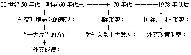 提问:建国初期,从1949年到50年代中期新中国外交方针的基本策略是什么?引导学生看书,总结归纳50年代中期以后我国所处的外交环境。