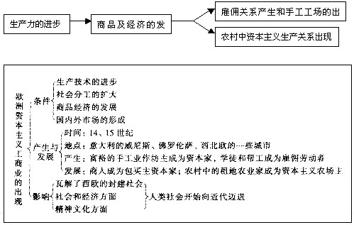 资本主义产生的过程比较复杂,要帮助学生理清资本主义产生的途径。
