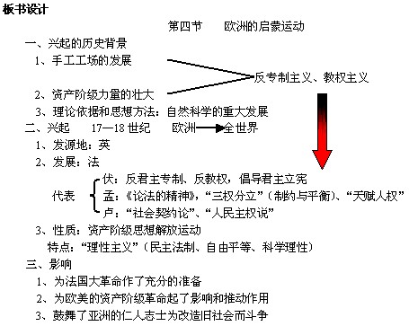 依据建构主义理论、多元智能理论,在教学过程中,教师或引导学生查阅资料,或教师在课堂上提供启蒙运动的背景材料和启蒙运动领导人的主要观点,让学生在课上分析、讨论,从而从多渠道培养学生的自学、思维能力,发挥教师在学生学习中的主导作用,以及树立学生在学习中的主体地位。