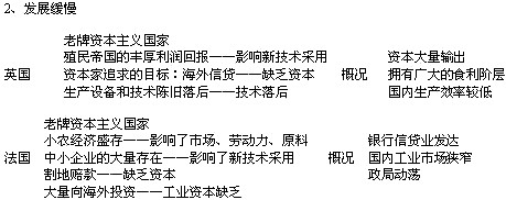 重点:美日经济迅速发展的原因、英国经济发展缓慢的原因