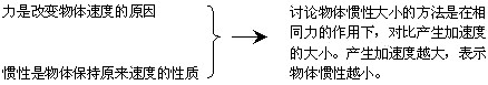 力是改变物体速度的原因、惯性是物体保持原来速度的性质——→讨论物体惯性大小的方法是在相同力的作用下,对比产生加速度的大小.产生加速度越大,表示物体惯性越小 .