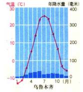 (展示并总结)在中国内流流域和外流流域图上画出季风区和非季风区的界线,并出示乌鲁木齐的气温降水图,得出结论:我国内流河主要流经非季风气候区,气候干燥少雨。