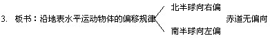 2. 讲解:由于海潮的顶托作用,长江入海口处形成众多的沙洲,将长江口水道分为南、北两支。长期以来,人们发现北支水道不断淤塞,沙洲逐渐与长江北岸相连,而南支水道则出现向南的侧移。江北由于泥沙不断的淤积,发育成广阔的三角洲。长江三角洲的形成,地球自转偏向力起了重要作用。由于地球自转,地球表面的物体在沿水平方向运动时,其运动方向会发生一定的偏转。在北半球向右偏,在南半球向左偏,赤道上无明显偏向。越向高纬,受地转偏向力越大,偏移越明显。这种现象在气流和水流的水平运动中表现得最为突出,有的地方甚至出现气流和水流的旋涡。