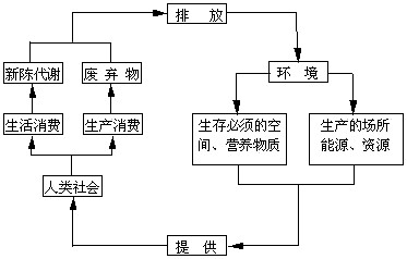②人类通过消费活动(生产消费、生活消费)使产品消耗、转化,以废气、废液、固体废弃物、热、噪声、电磁波等形式,把废弃的物质能量输出给环境。