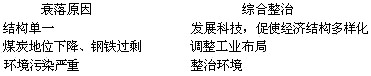 (引导结论)鲁尔区衰落的主要原因是经济结构单一,钢铁市场竞争激烈、煤炭地位的下降必将使整个鲁尔区的经济受到冲击;而根本原因是新技术革命对传统工业的冲击