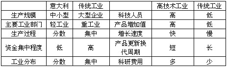 1 列表比较传统工业与意大利新兴工业、高技术工业的区别