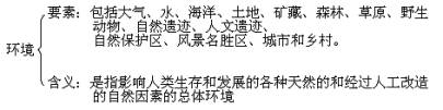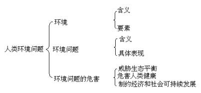 让同学们根据自己小组讨论的结果说明有关环境及要素,由于这一问题地理课中曾经涉及,大家很快达成共识,而且条理清楚、层次分明,大体归纳出以下结构图: