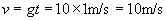 铁球由静止下落1s末,到与沙子接触时速度为: