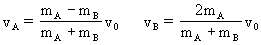 例5、讨论质量为mA的球以速度v0去碰撞静止的质量为mB的球后,两球的速度各是多少?设碰撞过程中没有能量损失,水平面光滑.