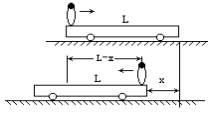例6 质量为M的平板车静止在水平路面上,车与路面间的摩擦不计.质量为m的人从车的左端走到右端,已知车长为L,求在此期间车行的距离?